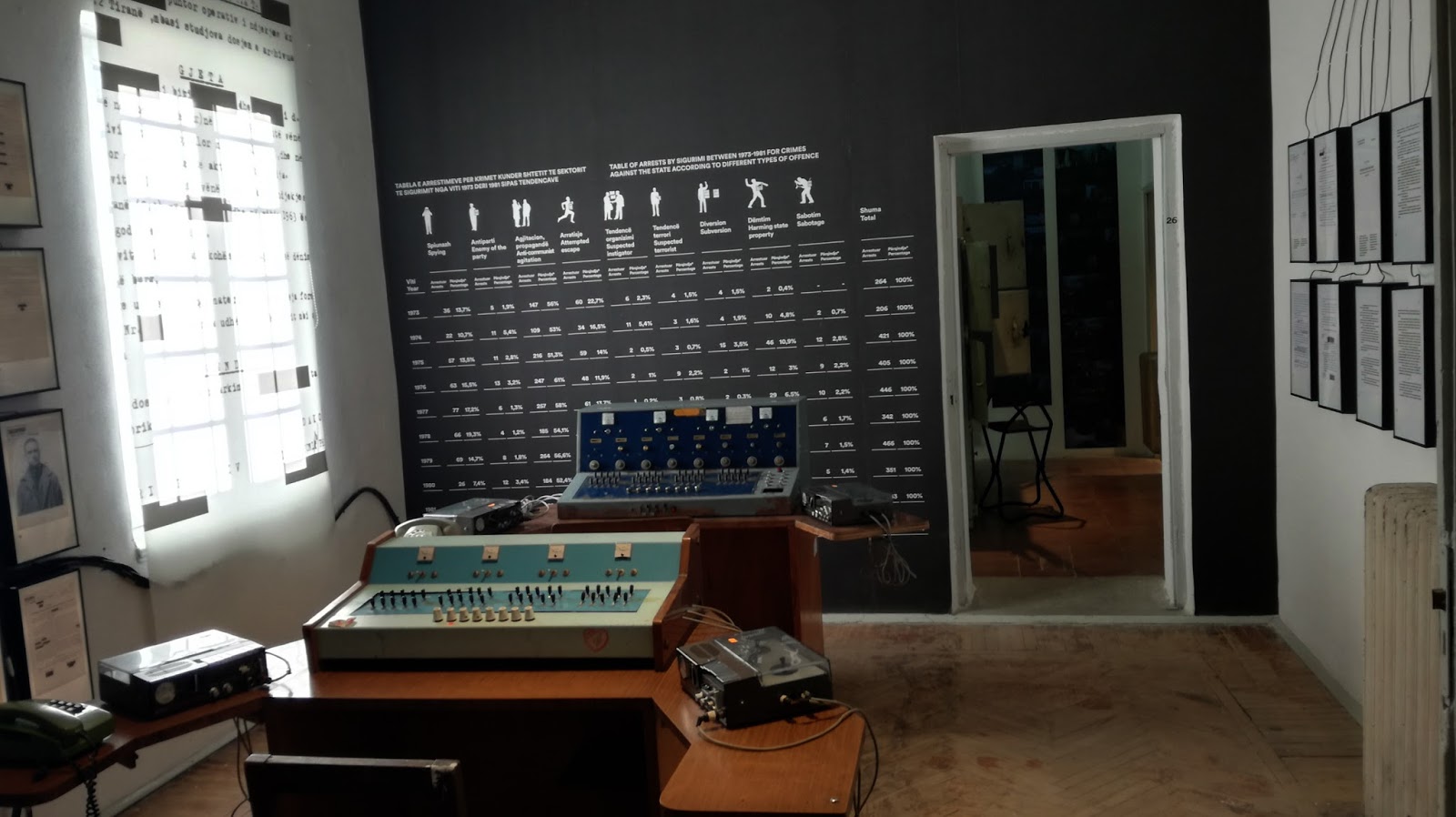 L’altra cosa è la Casa delle Foglie (Shtëpia e Gjetheve). E’ il nome suggestivo che è stato dato all’ancor più suggestivo museo dei servizi segreti comunisti (Sigurimi). Negli anni trenta era una clinica, trasformata dal Regime di Hoxha nel centro del quale si teneva sotto osservazione buona parte della città, con cimici distribuite anche negli hotel per stranieri e nelle ambasciate.
