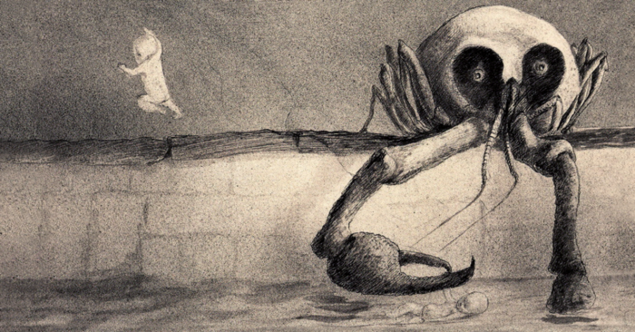 “Ora essi, lungo la strada, avevano stabilito che il primo che l’avesse avuto tra le mani avrebbe dovuto scagliarlo a terra. Ma quando Labda lo portò e glielo consegnò, per un caso voluto dagli dei, il bimbo sorrise all’uomo che lo aveva preso: questi lo notò, e un sentimento di pietà gli impedì di ucciderlo; impietosito, lo porse al secondo e il secondo al terzo: così il neonato passò per le mani di tutti e dieci, senza che nessuno si risolvesse a eliminarlo. Allora restituirono il bambino alla madre e uscirono; fermatisi sulla soglia, cominciarono ad accusarsi a vicenda, rimproverando soprattutto a quello che l’aveva preso in braccio per primo di non aver agito come convenuto.” (Erodoto, Storie, Libro V, 92, edizione UTET)